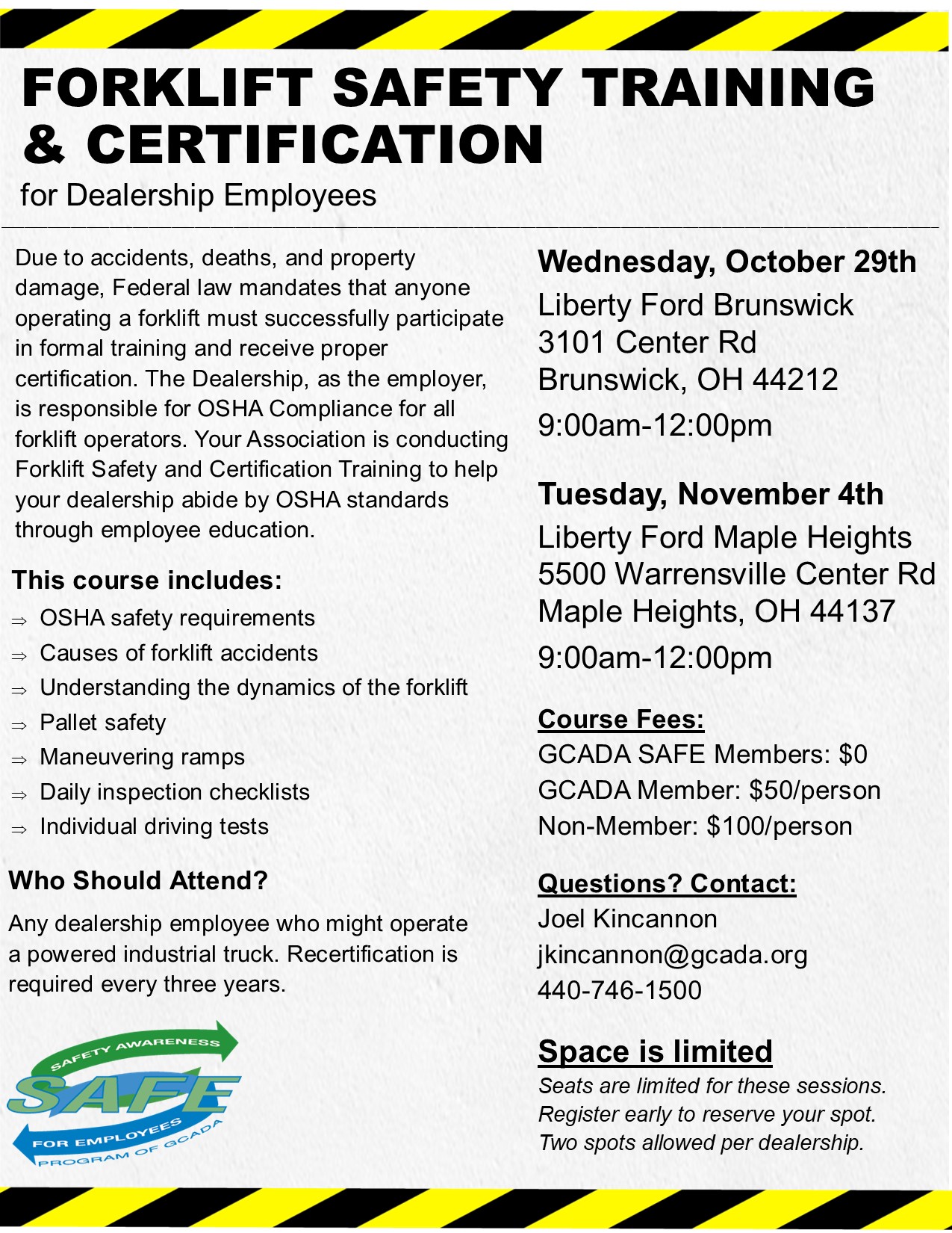 SAFE:$0 GCADA Member:$50/pp Non-Member:$100/pp